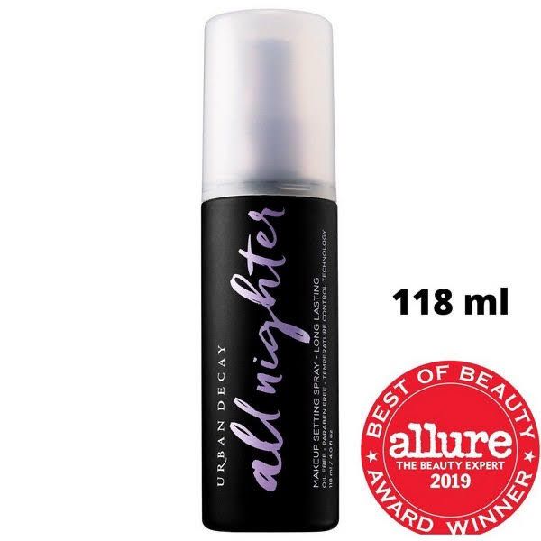 O All Nighter Makeup Setting Spray da Urban Decay irá manter sua maquiagem no lugar por até 16 horas. Sem óleo e sem parabenos, o spray ajuda a fixar a maquiagem, evitando que desbote, borre ou derreta. Indicado para todos os tipos de pele, inclusive oleosa, o spray mantém uma aparência fosca na zona T, melhora a aparência da maquiagem e não se acumula em linhas finas e rugas. Desenvolvido com tecnologia de controle de temperatura, o All Nighter não perde sua eficácia nem mesmo na umidade e no calor.